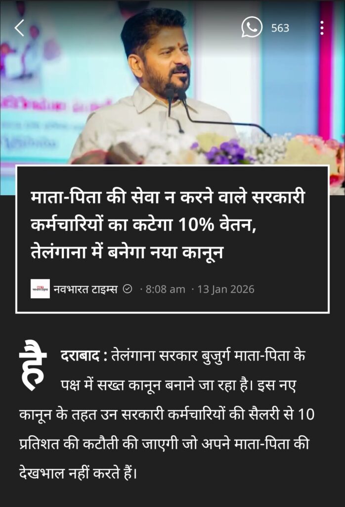 तेलंगाना का फैसला: माता-पिता की शिकायत पर कर्मचारियों की सैलरी से 10% कटौती कर सीधे अभिभावकों के खाते में जाएगा पैसा