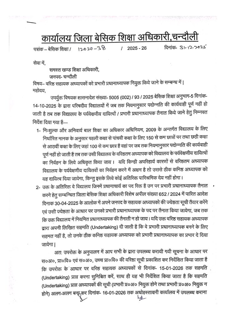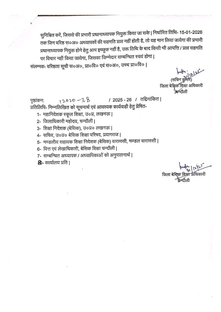 Home PRIMARY KA MASTER वरिष्ठता सूची के आधार पर विकल्प पत्र प्राप्त किए जाने का संबंध में